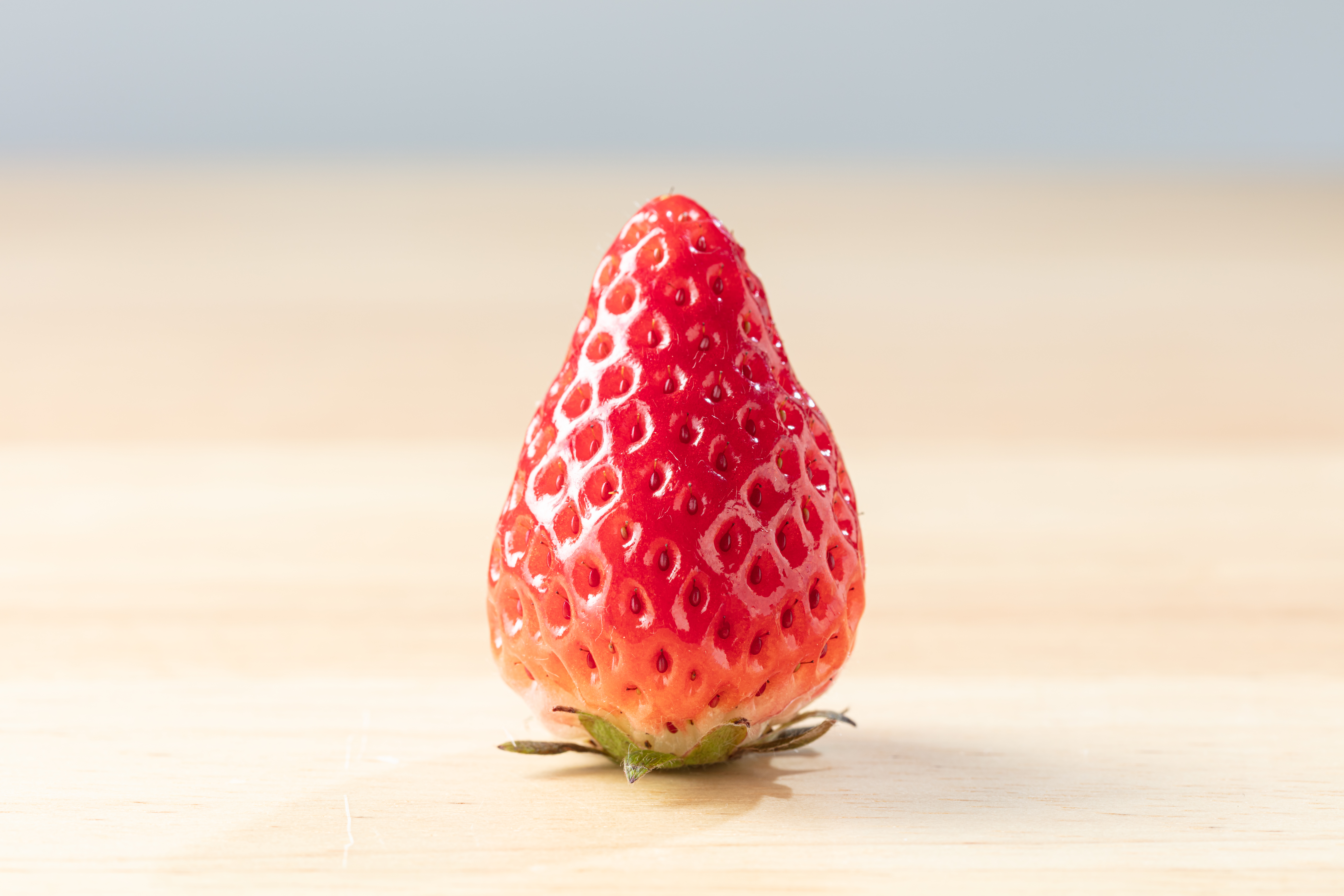 章姫は「久能早生」と「女峰」との交配で誕生した品種です! 果実の硬さは柔らかめで、形は円錐のようなフォルムでいちごらしい形をしているのも愛着がもてます。